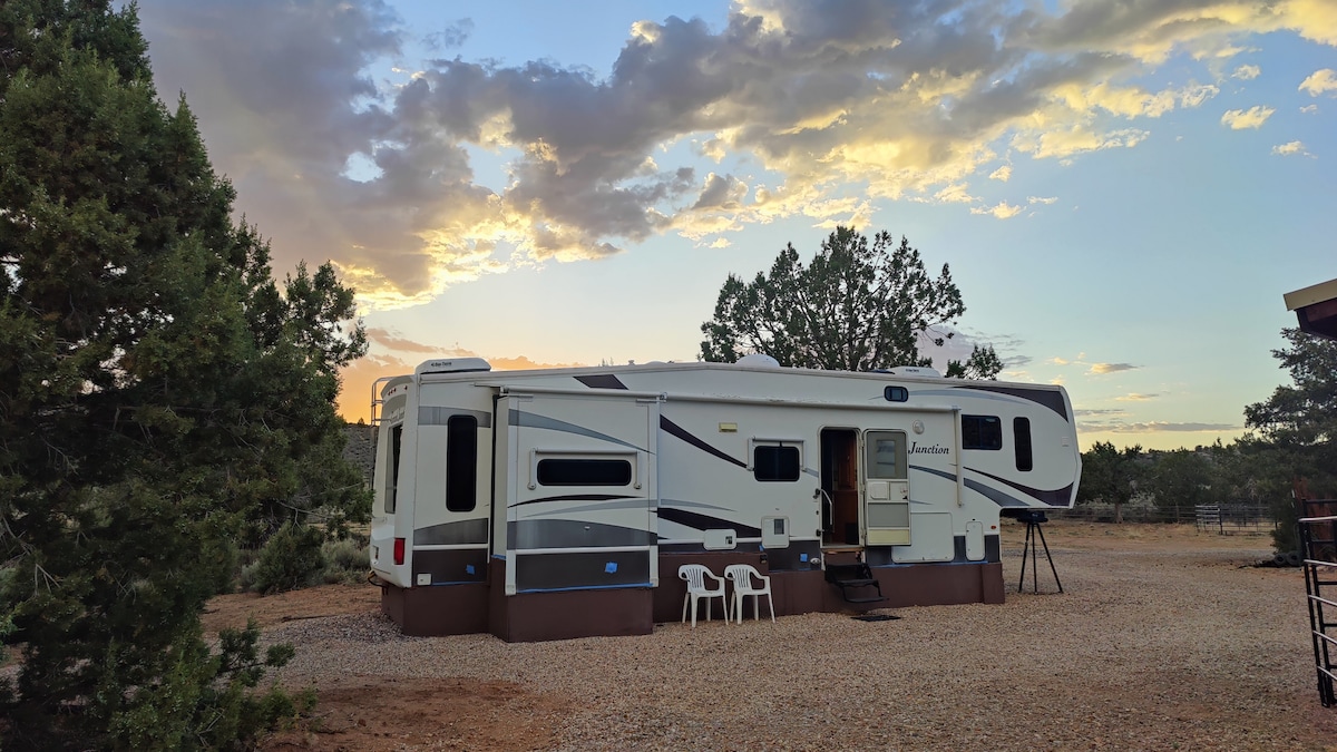 Esta hermosa casa rodante de 28 pies completamente remodelada es espaciosa, cómoda y ofrece unas vistas impresionantes de las infames rocas rojas Southern UT. Es lo suficientemente grande como para dormir 3 cómodamente con una cama tamaño queen y sofá futón. Ubicado en Leeds RV Park, tendrás acceso a todos los servicios; lavandería, duchas y baños públicos, fogatas, áreas de césped sombreadas y una casa club equipada con juegos. A solo 30 minutos en coche del parque Zion Ntl o del parque estatal Snow Canyon. ¡A 1 hora en coche de Bryce Canyon + cerca de otras atracciones locales cercanas!