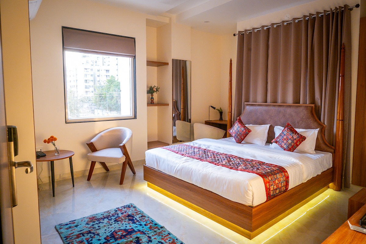 Impresionante hotel, donde cada detalle está diseñado para la máxima relajación e indulgencia. Las amplias habitaciones, adornadas con muebles elegantes, ofrecen impresionantes vistas a la calle. Los huéspedes pueden relajarse cerca del spa ayurvédico, disfrutando de tratamientos rejuvenecedores inspirados en las tradiciones locales. Las elegantes opciones gastronómicas cuentan con cocina gourmet elaborada por un reconocido chef local servido con exquisito. A medida que se pone el sol, el sonido de las suaves campanas del templo crea un ambiente tranquilo, por lo que es el lugar perfecto.