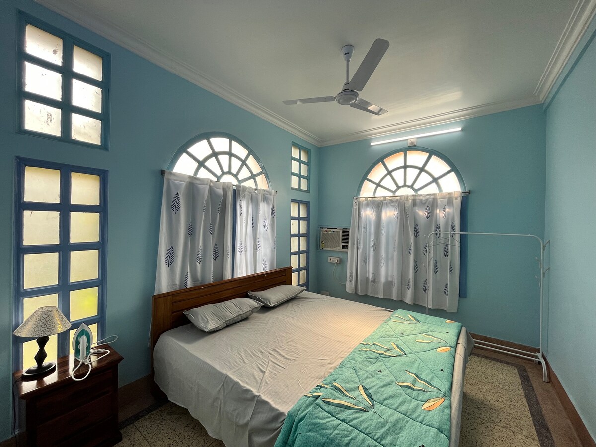 Namaste! Breezy & Budget-Friendly Studio in Mayapur Simplicity meets connectivity in this airy studio apartment, located just a 12-15 minute walk (900m) from ISKCON. Designed for solo travelers, backpackers, or students, this space offers the essentials: a comfortable place to sleep, excellent ventilation, and high-speed WiFi. It is a perfect economy base for those who plan to spend most of their day at the temple and need a quiet, affordable spot to sleep and work.
