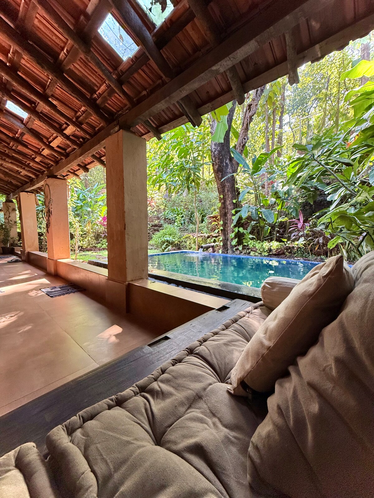 Tucked away in a jungle-y corner of Agonda, and just a 10-minute drive from popular beaches, this Red Emerald cottage comes with everything you need to enjoy a laid-back stay in South Goa. Equipped with a kitchenette, JioFiber high-speed WiFi, and power backup, in addition to unique offerings like binoculars, a curated book selection, and our extra sprinkle of psychedelic whimsy, our space was made for travelers looking to unwind and for anyone who is curious to explore a junglier side of Goa.