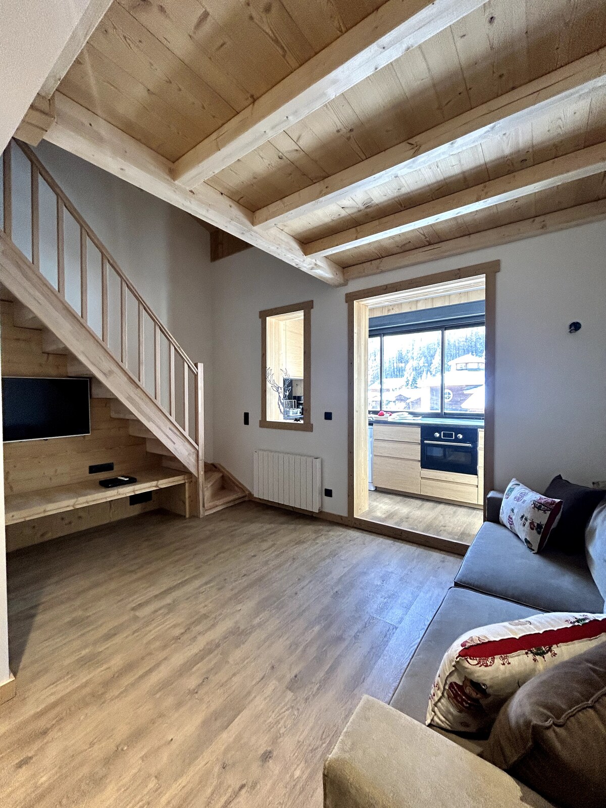 Location 2 pièces mezzanine 5 couchages pour semaine, weekend, ponts de mai ou novembre, vacances scolaires été/ hiver et hors saison. Tout le séjour peut se faire à pieds car tout est à proximité et des navettes gratuites de bus avec un arrêt en face sont prévues en saison. Parkings gratuits. Nombreuses randonnées raquettes, pédestres ou VTT disponibles. L'appartement est situé à côté de la ludothèque, qui permettra de vous éclater en famille ou amis avec les nombreux jeux qu'elle dispose.