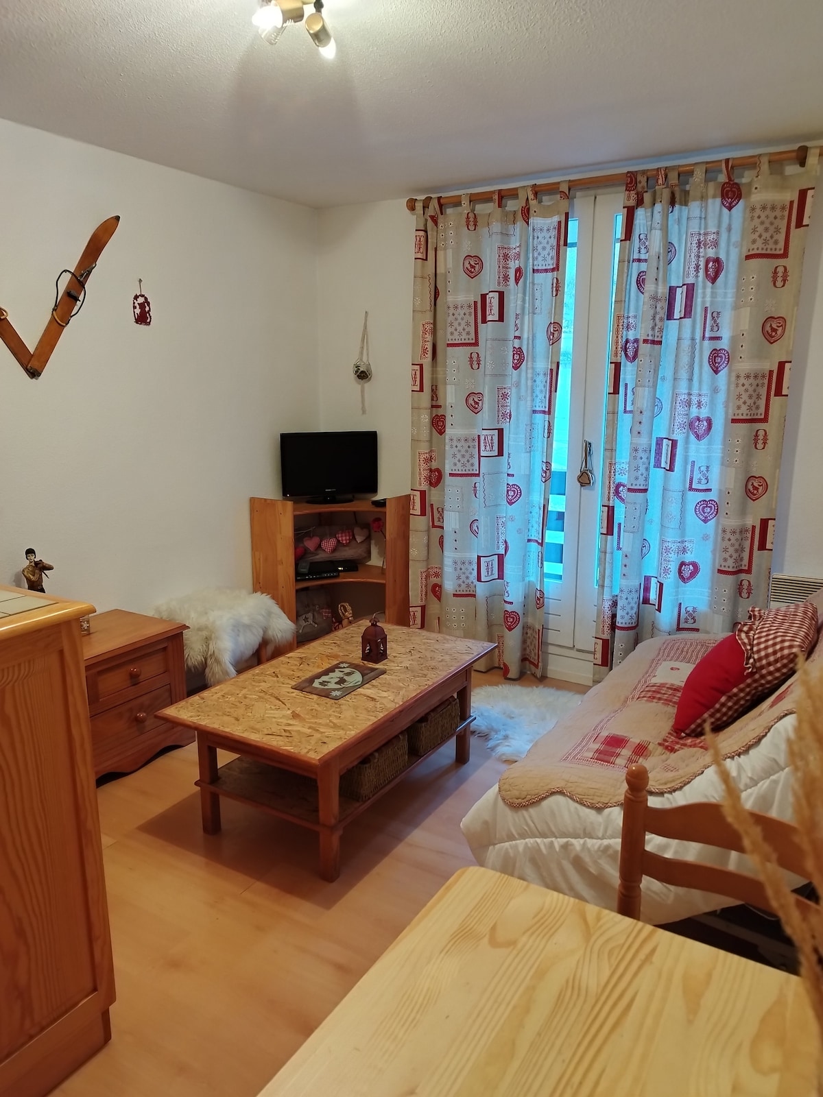 ¡Bienvenido! ¡Nuestro alojamiento familiar es tuyo! Muy cerca de todos los sitios y servicios. Apartamento dúplex de 30 m, con capacidad para 5 personas (1 cama de 2 plazas 140 – 1 sofá cama de 2 plazas 140 – 1 litera). Muy tranquilo, orientado al sur. La residencia se encuentra en el corazón de la estación a 20 metros de las pistas, salida de esquí a los pies, ESF, a 50 metros de la pista de patinaje sobre hielo, supermercado, restaurantes, farmacia, panadería, etc. Estado impecable. Alojamiento para no fumadores, cuenta con un amplio balcón orientado al sur