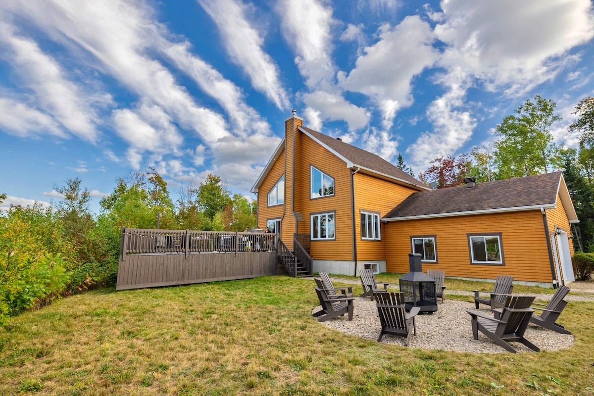 Préparez votre escapade parfaite en famille ou entre amis ! ✨ Notre chalet, à moins de 2 min. de la montagne, vous offre un accès exclusif au ski alpin et sentiers de randonnée. La vue exceptionnelle sur le Lac depuis notre hébergement 2 étages crée un cadre enchanteur. Profitez de moments uniques avec paddle board, kayaks, spa, barbecue, foyer intérieur et extérieur, table de baby-foot pro, arcade et une variété de jeux. Tout est conçu pour une expérience mémorable.