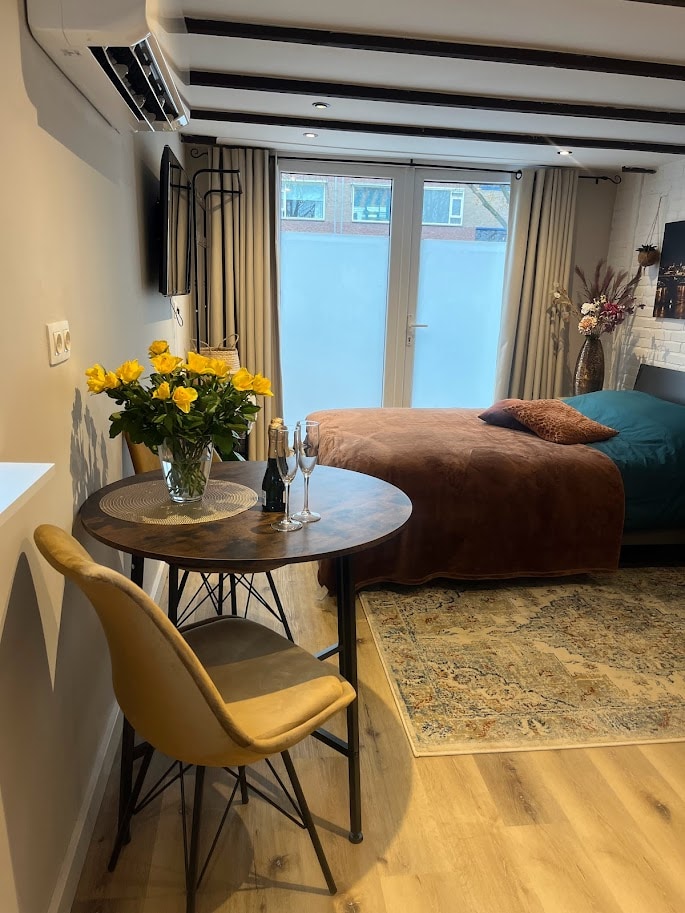 El B&B está situado en el centro de Renkum. Varias rutas de senderismo/bicicleta, incluida la Green Divide, pasan por este B&B. El espacio independiente es compacto, amueblado de forma práctica con un sofá cama muy cómodo de 160 de ancho. Hay una pequeña cocina con café, té, nevera y microondas. Si lo desea, ofrecemos un desayuno completo por 12,50 euros por persona. El supermercado está a 3 minutos a pie. Hay una zona de estar privada en el jardín. Las bicicletas pueden estar secas y seguras. Una mascota en consulta.