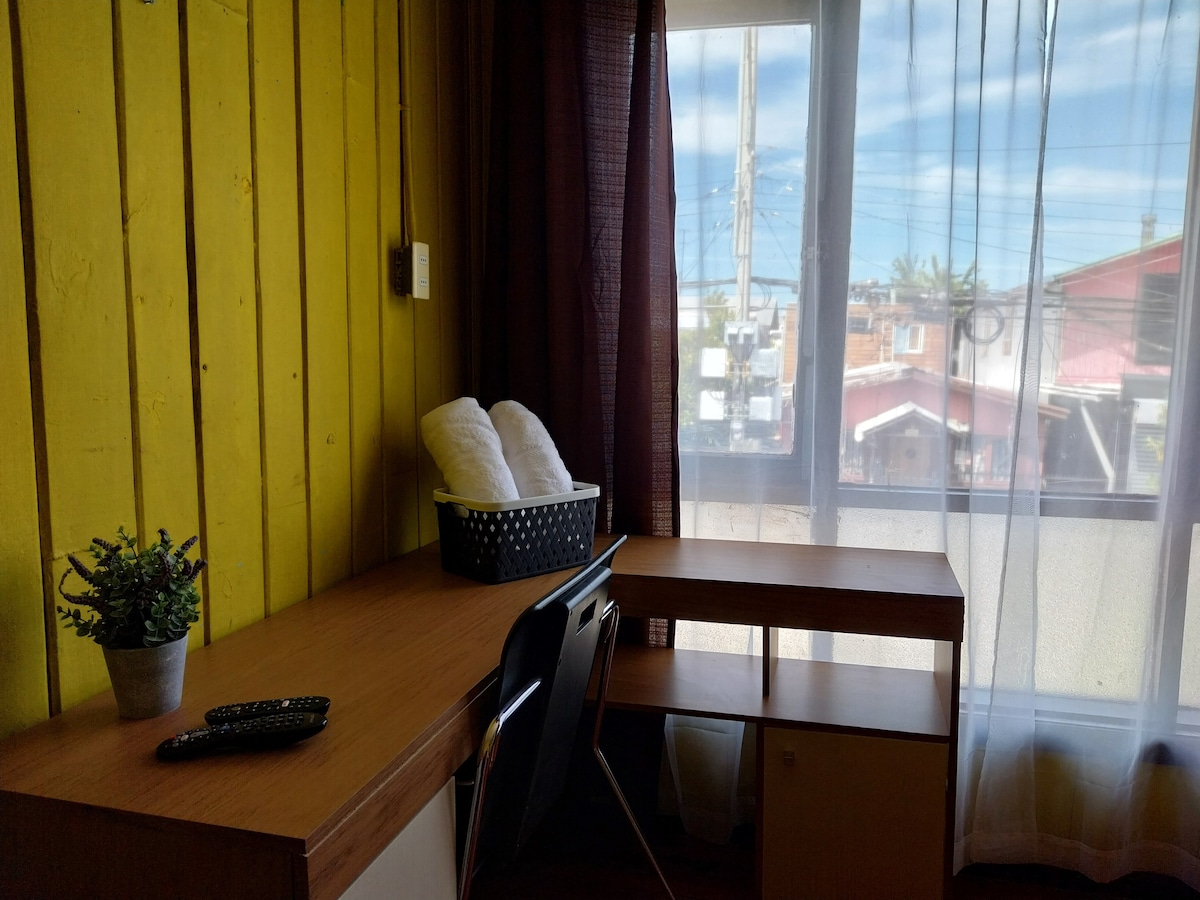 Ubicado en lo más alto de nuestro establecimiento (4 piso), disfruta de un ambiente iluminado y tranquilo en el centro de la ciudad. Recorre la ciudad de manera segura desde nuestro condominio ubicado en el corazón de Valdivia, y permítenos orientarte para que obtengas las mejores experiencias. Estamos presentes las 24 horas para atenderte en lo que necesites.