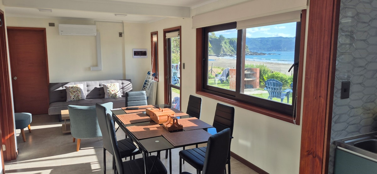 Acogedora casa totalmente equipada, con decoración rústica y comodidades para que sientes en total confort y relajo. Tiene gran terraza con vista al mar para poder dormir escuchando el sonido de las olas. Además cuenta con excelente wifi para que también puedas cumplir con tus labores vía online. Actualmente esta cabaña cuenta con tinaja de madera en su terraza para un máximo 6 personas (Consultar valores por mensaje o al momento de llegada) Cabaña se encuentra pareada con muy buena aislación.