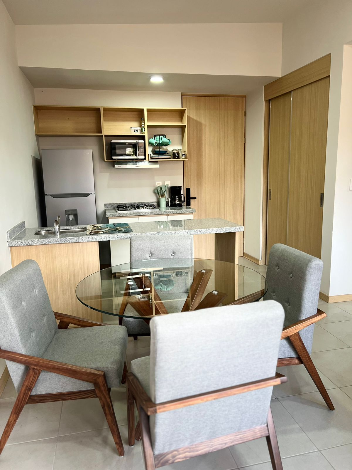 Lujoso y hermoso apartamento con diseño art déco y muebles, relajarse y disfrutar de la vista porque está en un noveno piso, cuenta con comodidades como una piscina pintoresca, gimnasio, azotea panorámica, sala social, parrillas para barbacoa, seguridad y ascensores. El apartamento tiene una habitación con una cama tamaño queen, un baño completo, lavandería, cocina completa, nevera con máquina de hielo y dispensador de agua fría. Proporcionamos 2 toallas para la ducha y 2 toallas para la piscina. También ofrecemos excursiones a la ciudad y a pueblos mágicos.