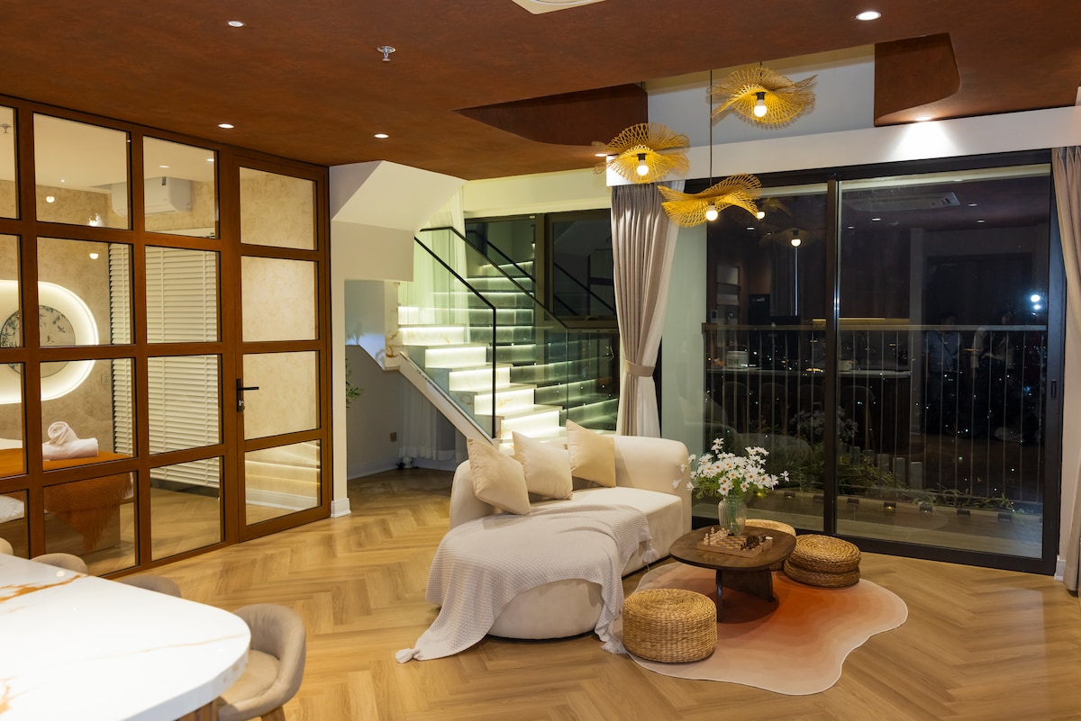 Relajate en este acogedor y lujoso departamento en Ecopark con baño privado, sauna privada y minibar de cortesía. La cocina incluye freidora de aire, microondas, cocina completa, incluidos utensilios de cocina y sistema de agua filtrada, además de lavarropas y secarropas. Acceso gratuito al gimnasio, la pileta y el onsen en un entorno verde y exuberante. A solo 20 minutos del casco antiguo de Hanói con servicio de autobús por hora. Los huéspedes que reservan estadías largas disfrutan de beneficios adicionales de cortesía para que su estadía sea aún mejor.