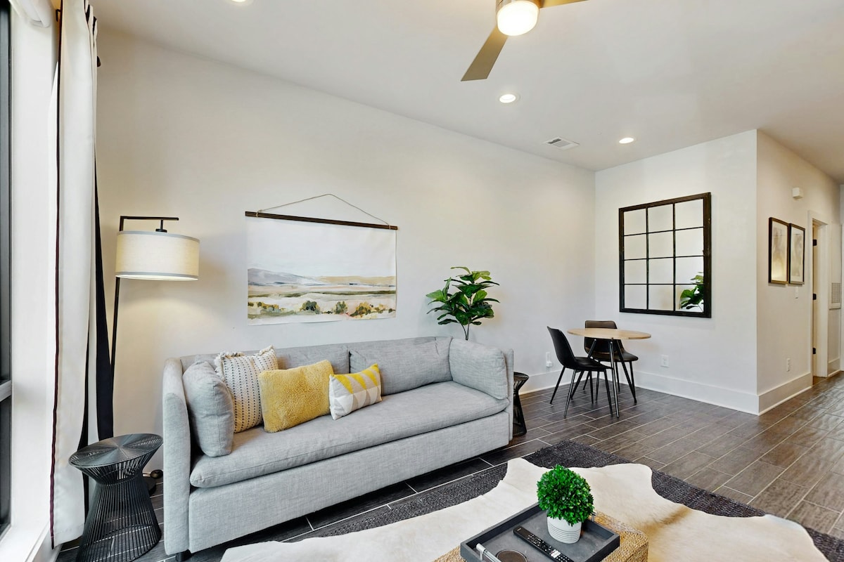 ¡Te damos la bienvenida a nuestro departamento de 1 DORMITORIO / 1 BAÑO en el corazón de Melrose! Tiene capacidad para 3 personas y viene con una plaza de estacionamiento gratuita + lavadora/secadora en la unidad. Venta minorista (incluidos dos restaurantes) en la planta baja, con muchos restaurantes y bares, una licorería y un Publix, ¡todo a pocos pasos! Y solo a 1,6 km de 12 South. Excelente wifi, fácil acceso interestatal, llegar al centro rápidamente, lujo, muebles completamente nuevos... ¡ven a verlo!
