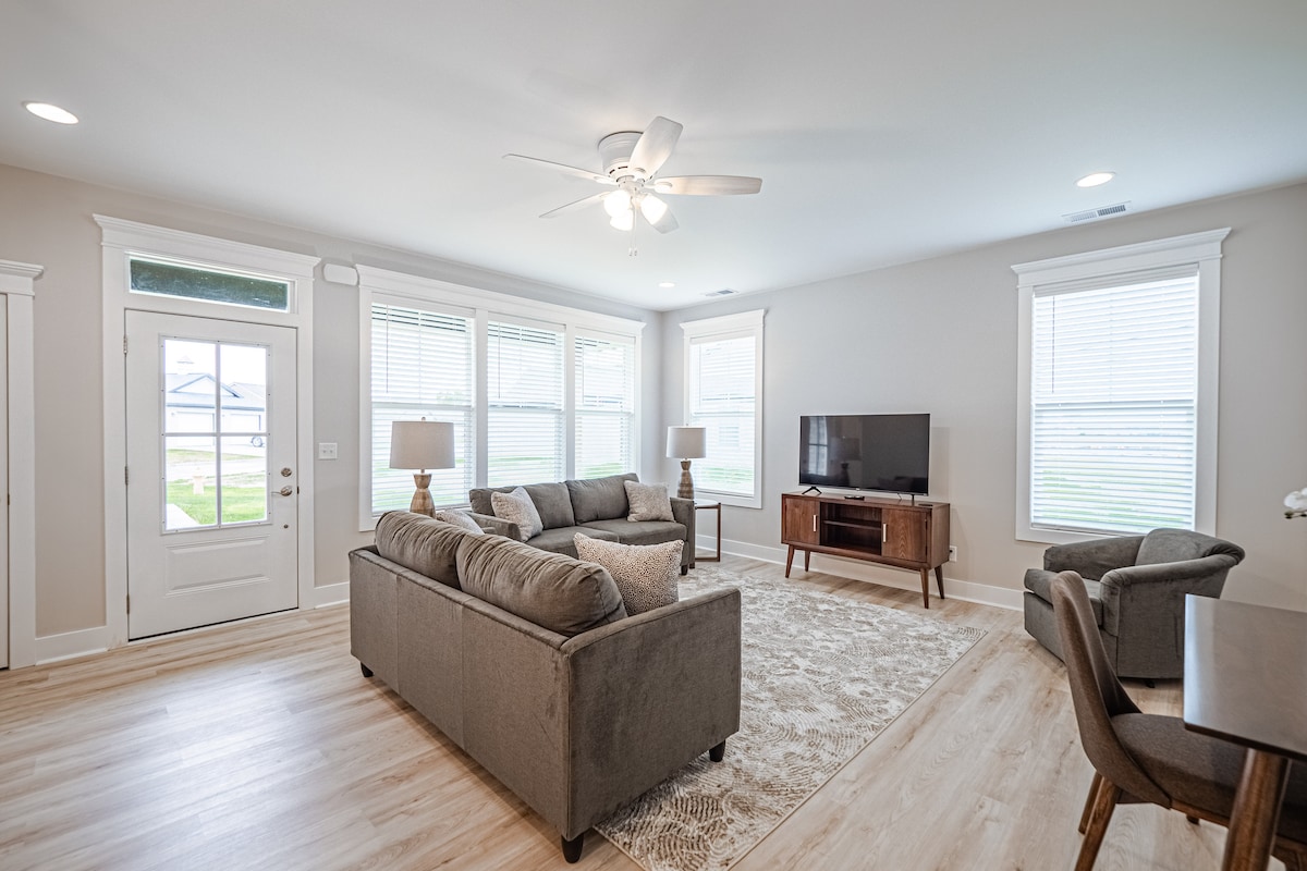 ¡Te damos la bienvenida a nuestra moderna casa adosada de dos pisos y dos dormitorios en East Evansville! Con una ubicación céntrica cerca de hospitales, universidades, restaurantes y a solo 10 minutos del centro. Ideal para trabajadores de la salud, estudiantes y jóvenes profesionales. Características - Dos dormitorios cómodos. - Cocina totalmente abastecida - Acogedora sala de estar con TV inteligente. - Wi-Fi de alta velocidad - 2 escritorios de trabajo - Patio privado grande. - Estacionamiento gratuito en el lugar. Llegada: 3 PM Salida: 11:00 ¡Reserva ahora y disfruta de lo mejor de Evansville!