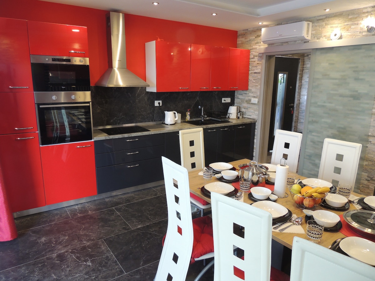 El departamento se encuentra a 50 metros de una hermosa playa de arena adaptada para niños. Es muy espacioso (60 metros cuadrados). Tiene un dormitorio grande, un baño con ducha, una cocina y un salón con un sofá que se convierte en una cómoda cama para dos personas. Los huéspedes tienen wifi gratuito y televisión por Internet para usar, así como aire acondicionado. Una gran terraza con vistas al mar y una piscina al aire libre con una mesa de comedor mejorarán sus vacaciones. Los huéspedes de los 3 departamentos tienen a su disposición una piscina de agua salada y una chimenea para barbacoa.