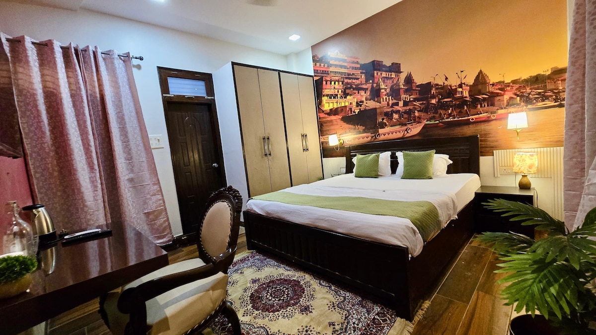 ¡Namasté! ¡Bienvenido a tu hogar lejos de casa en Varanasi! Espacio privado de lujo con jardín en la azotea. Perfectamente ubicado a menos de 20 minutos de los sitios emblemáticos de Varanasi (templo Shri Kashi Vishwanath y Ghats), este espacio ofrece una cama tamaño king, una cocina totalmente equipada, wifi, un gran televisor Android y una amplia terraza para relajarse o practicar yoga. Ya sea que estés aquí para explorar, meditar o simplemente relajarte, esperamos que te sientas como en casa y te vayas con una sensación de rejuvenecimiento.