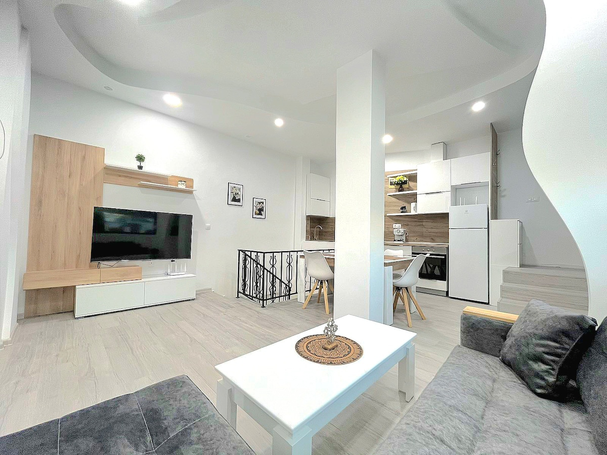Welcome to my cozy and newly furnished apartment one minute away from the central tourist alley leading to the Beach, the Sea Garden, restaurants, bars and nightclubs. 5 minute walk to the Beach. It has everything you could possibly need. Friendly to pets. -Two bedrooms each with a double bed. -Living room with a sofa that stretches and can become a third double bed. -One bathroom; -A balcony. Check-in after 14:00 Check out before 11:00