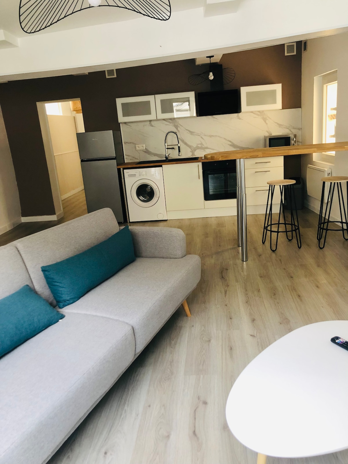L'appartement est entièrement à votre disposition en RDC avec cour totalement sécurisée , idéal pour stationner vos vélos . Vous avez la cuisine aménagée avec plaque induction,four combiné micro-onde et chaleur tournante ,réfrigérateur . Vous avez la sdb avec sa douche italienne et ses toilettes séparées La pièce principale avec son coin repas ,son coin salon et au fond de la pièce séparé par un paravent 1 confortable lit de 140/190. L'appartement dispose de la fibre