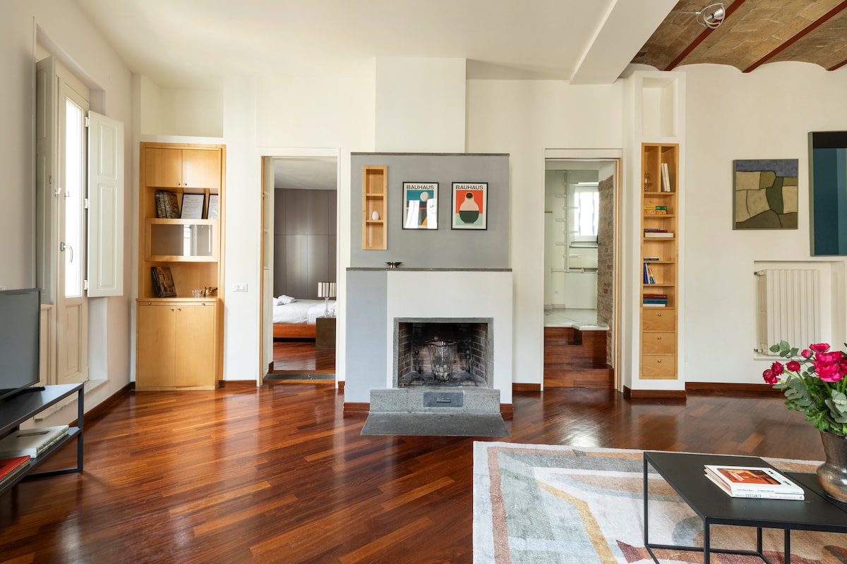 Enciende el gran fuego de piedra y relájate con un libro en esta elegante casa con vistas a Via dei Banchi Nuovi. Los techos artesonados cubren habitaciones acogedoras en tonos relajantes y neutros acentuados por muebles de diseño y pinturas originales del propietario. Esta encantadora casa totalmente renovada se encuentra en una de las zonas más bellas, antiguas y vibrantes del centro de la Ciudad Eterna. También nos gusta ofrecer una hospitalidad ecosostenible: utilizamos electricidad de fuentes renovables y productos orgánicos.