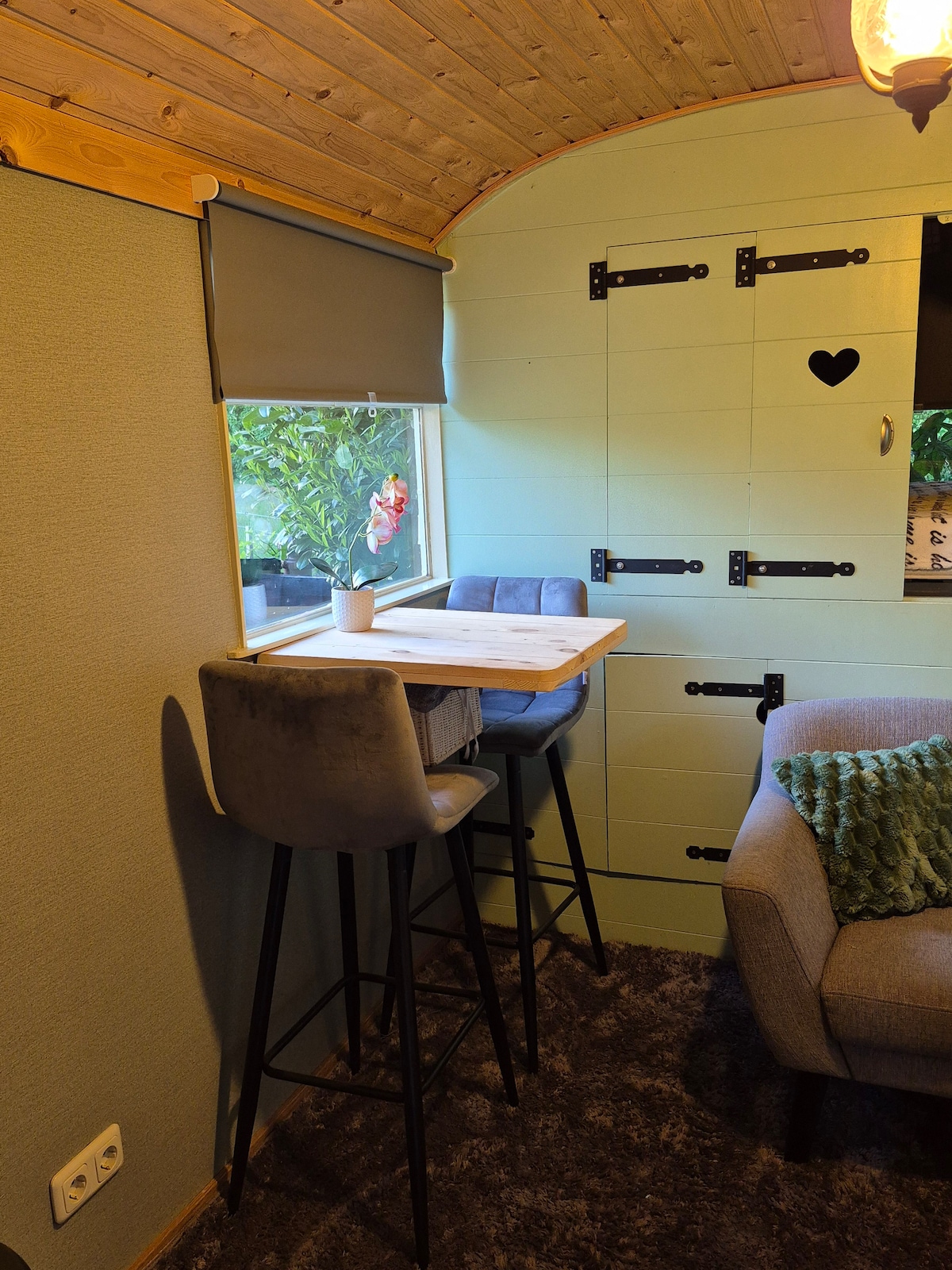 Welkom in ‘Paulus’ – een uniek en romantisch vakantiehuis met volledige privacy op een kleinschalig landgoed in de Veluwe. Grote ramen zonder inkijk, 1500 m² omheind bosperceel en een privé hot tub bieden een natuur-retreat waar de tijd stilstaat. Het warme interieur met 70’s accenten sluit aan bij de LP-collectie, waardoor sfeer, muziek en stijl samenkomen. Binnen vind je een open haard, sfeervolle slaapkamer en volledig uitgeruste keuken. Perfect voor rust in natuur met en een écht thuisgevoel