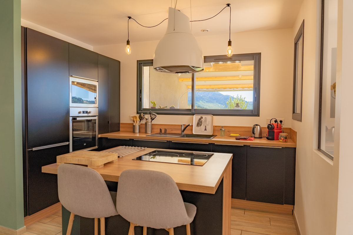 Magnifique vue sur le lac, cocon dans la montagne perché à 1100 mètres, idéal pour ralentir le temps de quelques jours. A 15 min du village. Best place pour : lever de soleil en hiver sur la montagne, et lever de lune au printemps 🤩 Parfait pour randonner, courir, faire du vélo, faire du yoga, lire. Nos deux chats aiment venir ronronner sur la terrasse. Nuits calmes, ciel étoilé. Véhicule indispensable car pas de transport en commun. Prévoir pneus neige ou chaînes entre novembre et mars.