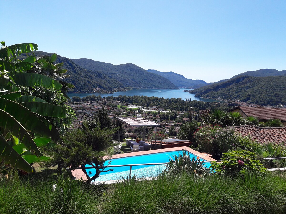 ¡Bésate por el sol y rodeado de naturaleza! Fácilmente accesible en auto o en transporte público desde Lugano, nuestro acogedor departamento en la planta baja de una villa, ubicado en una colina soleada a 800 metros sobre el nivel del mar, es el refugio ideal para unas vacaciones relajantes. Las impresionantes vistas del lago y las montañas hacen que este lugar sea realmente especial. Además, hay un espacio de estacionamiento cubierto incluido en el precio para garantizar la máxima comodidad.