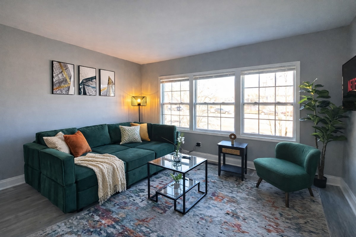 Welcome to your comfortable Birmingham home away from home! This thoughtfully designed 1-bedroom, 1-bathroom apartment offers the perfect mix of relaxation, function, and modern style. Whether you’re visiting for work, a weekend trip, or a city escape, this space makes it easy to settle in and unwind. Sunlight fills the apartment through multiple windows, highlighting warm floors, inviting decor, and cozy furnishings throughout.