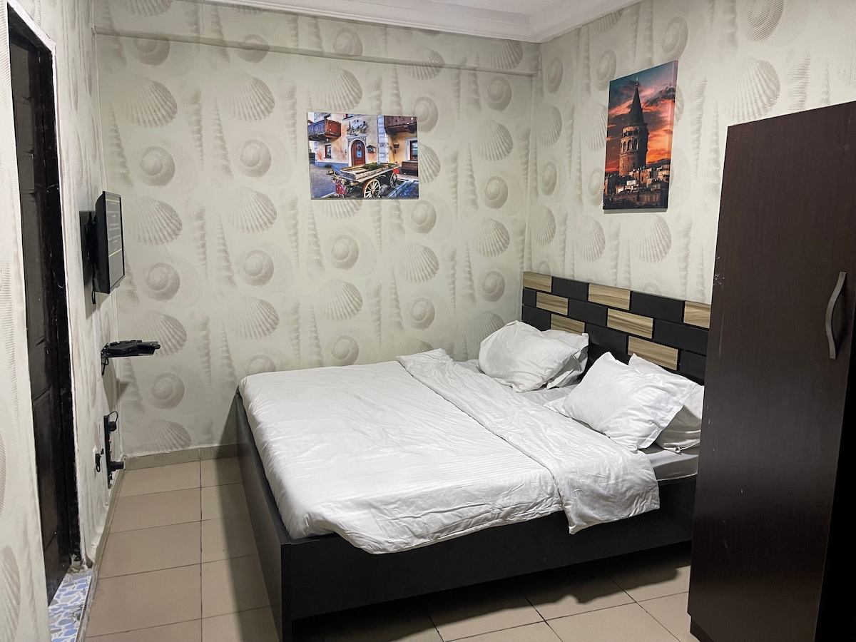 Este es un lujoso apartamento de 1 dormitorio con baño en el corazón de Lekki Fase 1 con un aseo para invitados. El apartamento está muy cerca de todos los servicios y tiendas. Cuenta con una cocina totalmente equipada con accesorios y utensilios completos, lavadora, wifi superrápido, todos los televisores son inteligentes; puedes ver Netflix, YouTube, DSTV, etc. Este es un hogar lejos de casa y nos esforzamos por garantizar que todos nuestros huéspedes disfruten de su estancia y tengan una experiencia memorable a precios asequibles.