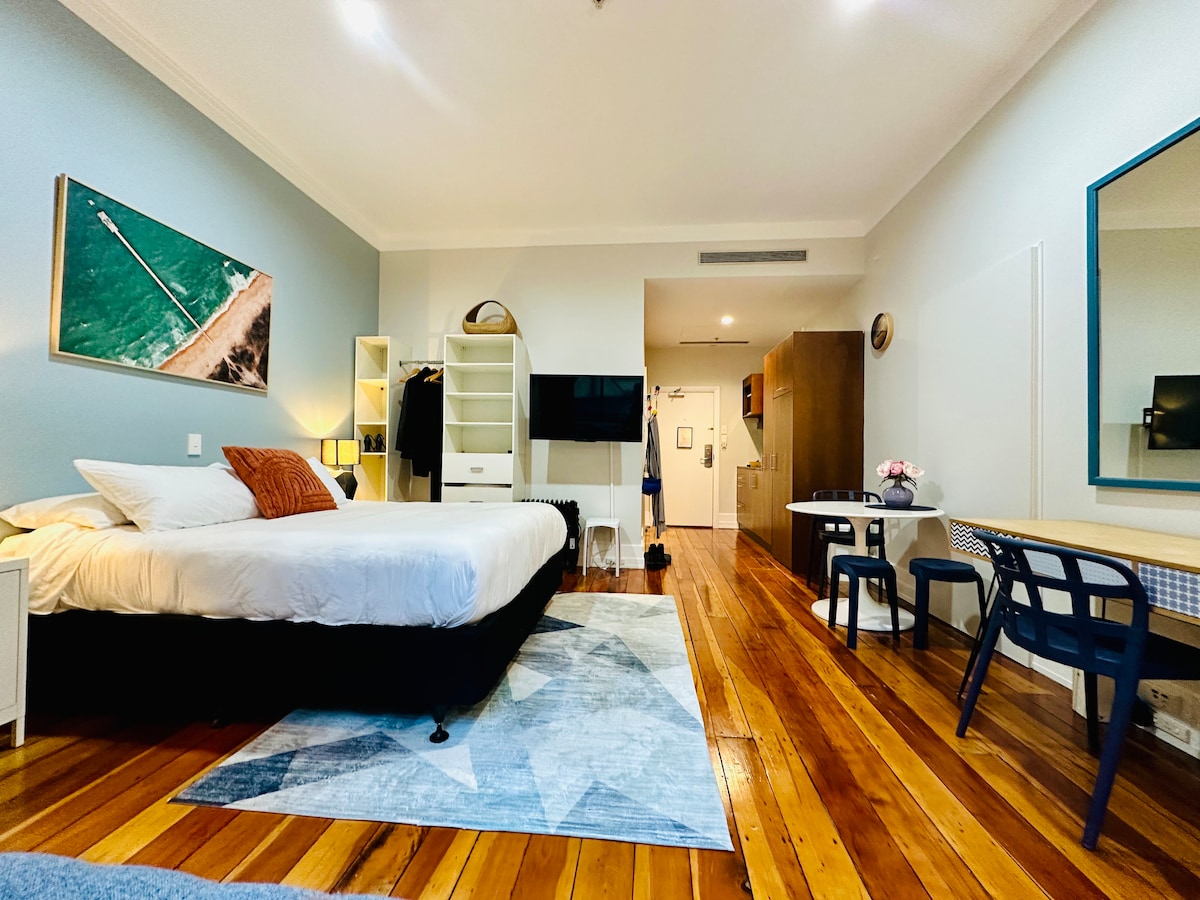 Amplio apartamento estudio de 40 metros cuadrados en esquina, ubicado en el Heritage Hotel Tower Wing en Auckland CBD, a pocos pasos de Viaduct Harbour (7 min), Wynyard Quarter (15 min), Britomart (9 min), terminal de ferris (10 min), Queen Street (7 min) y SKY CITY (3 min). Nota: no hacemos llegadas anticipadas ni salidas después de la hora establecida, así que no envíes solicitudes al respecto. Consulta mi guía para obtener recomendaciones locales.