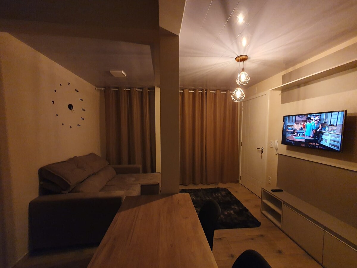 Apartamento nuevo 01 Habitación con cama doble. Tiene una estufa, geladería, hervidor eléctrico y microondas. Ubicación privilegiada con fácil acceso a la entrada de la ciudad. Está a 3 km del centro de la ciudad y cerca de Havan, supermercados y todo el complejo vehicular de la ciudad, como concesionarios, mecánicos, tiendas de vehículos. Barrio residencial muy tranquilo y seguro.