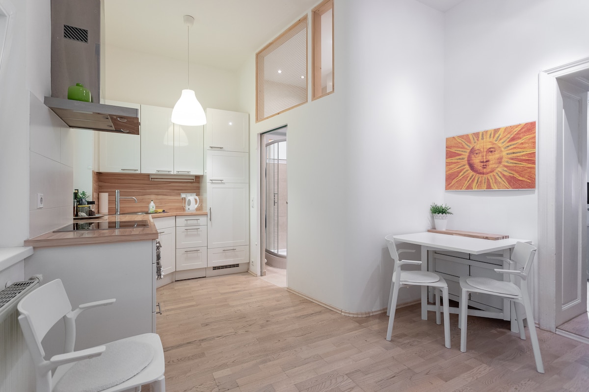 Entra en la comodidad de tu elegante apartamento en la azotea bañado por el sol, con excelentes instalaciones en el centro de Viena. A solo unos pasos de la vibrante Radetzkyplatz y del río Danubio, el apartamento promete un refugio urbano, a poca distancia a pie de los mejores restaurantes, tiendas, atracciones y lugares de interés de la ciudad. ¡La auténtica vida vienesa en todo su esplendor! Cama tamaño✔ king + sofá cama Sala ✔ de estar de planta abierta. Cocina ✔ Totalmente Equipada Balcón ✔ privado. ✔ Smart TV Wifi de✔ alta velocidad ✔ Aire acondicionado Más información ↓