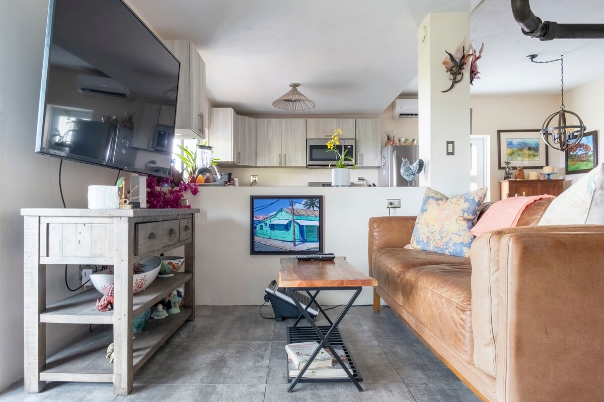Acogedor departamento de 1 dormitorio y 1 baño en el tranquilo barrio de Cofi, a solo 1 milla del ferry y a minutos de Isabel II. Perfecto para parejas o grupos pequeños, con aire acondicionado, wifi, cocina, balcón y equipo de playa. Cerca de joyas locales como Sea Glass Beach, Sun Bay (15 minutos) y Caracas Beach (20 minutos). ¡Disfrutá de la comodidad, la conveniencia y el encanto de la isla en Casa Cofi #2!