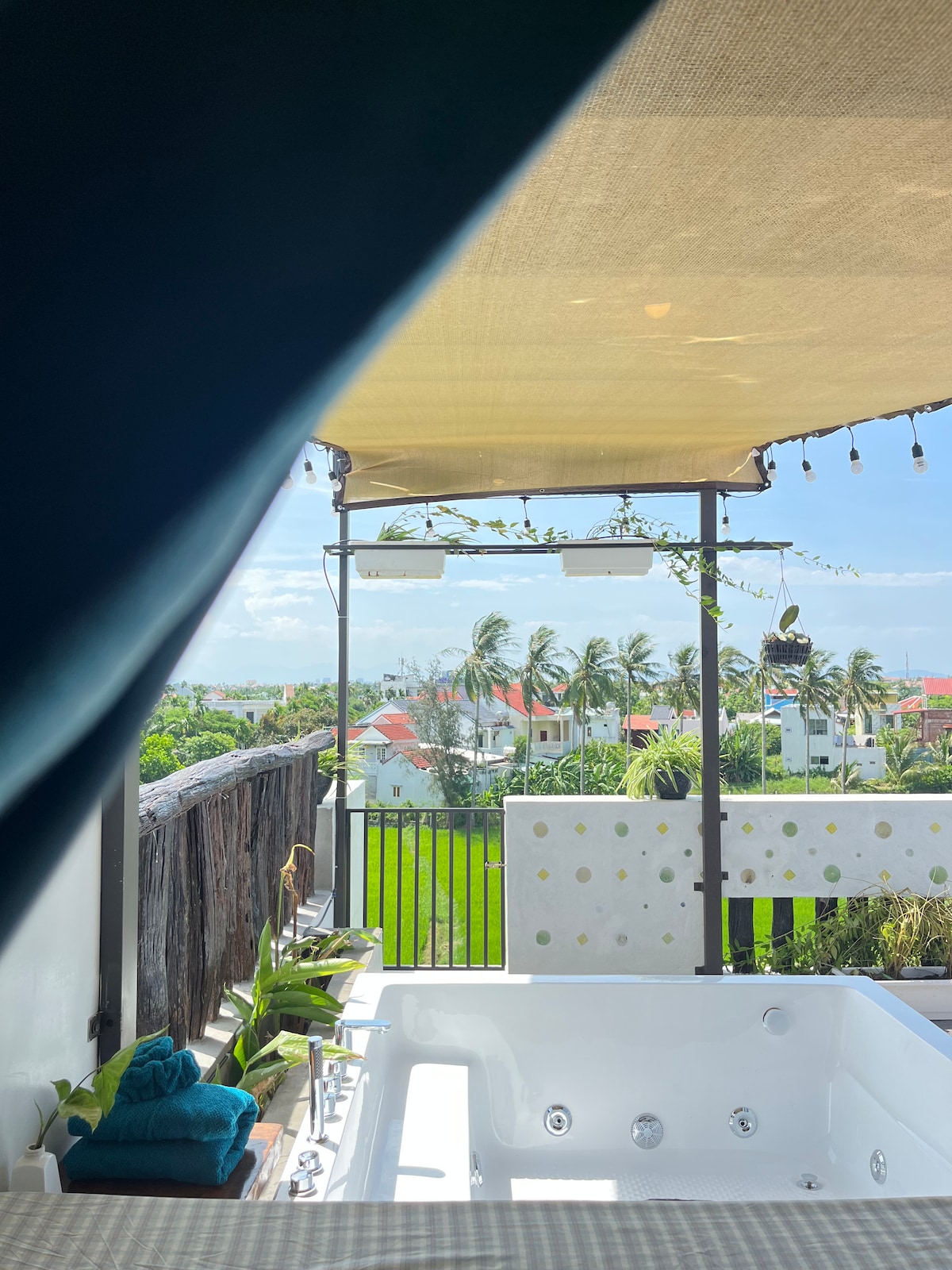 Un loft acogedor y moderno de planta abierta con un jacuzzi privado en la azotea (1,6 m x 1,6 m) con vistas a exuberantes campos de arroz verdes. Disfrutá de una cómoda cama con un colchón superior de primera calidad, una ducha con efecto de lluvia con diseño de teclas de piano, una cocina completa con isla, una lavadora privada y un entorno tranquilo. Perfecto para parejas o viajeros solitarios que buscan privacidad, naturaleza y comodidad en el auténtico Hoi An.