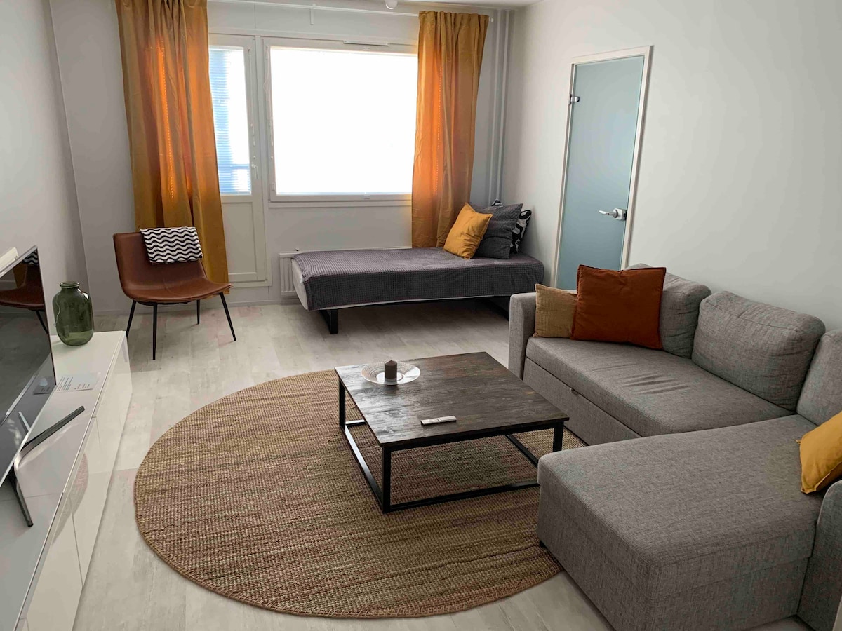 Apartamento de 60 metros cuadrados reformado en una comunidad de vecinos tranquila. El apartamento es adecuado para familias, 6 camas para adultos. El parque deportivo de Salo está a 900 m, el hospital a 700 m, el instituto a 200 m, la tienda más cercana a 450 m, la estación de tren a 1,7 km y el centro de la ciudad a 1,5 km. Los residentes tienen acceso a TV (Netflix, Disney+), wifi, cafetera, hervidor de agua, tostadora, lavadora, aspiradora. Vajilla para ocho personas y utensilios de cocina. La casa ofrece ropa de cama y toallas. El apartamento incluye una plaza de aparcamiento gratuita.