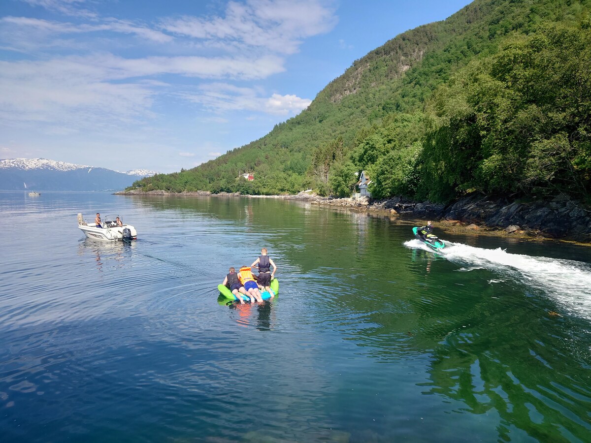 Praktisk privathus med 3 soverom, 2 bad EL bil lader 7,8 kw type 2 kontakt. Kamera på P-plass Privat brygge uten innsyn Huset ligger ved Sognefjorden og sikkerhet er viktig da været ved fjorden kan skifte veldig fort, fjellet kan være glatt ved nedbør eller bølger. Livbelter på vaskerommet som skal benyttes ved leie av båt, kayak, kano og for de som ønsker dette når du fisker eller har med barn. Pr person sengetøy + 2 stk handlede. Forlat huset som du fant det og ønsker å finne det