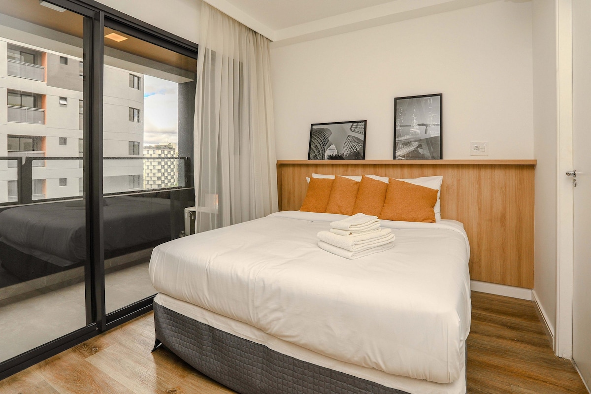 Bienvenidos y siéntanse como en casa. El piso es nuevo, diseñado especialmente para vosotros y tiene una decoración impecable, muy práctica para el día a día. ¡La vista es espectacular! El piso está en la 28ª planta. Estamos en una excelente ubicación en São Paulo, en el barrio de Pinheiros, con restaurantes, supermercados y panaderías muy cerca. Tiene 40m2 con 1 habitación y 1 baño. A poca distancia de la estación de metro Fradique Coutinho (sólo 2 cuadras).
