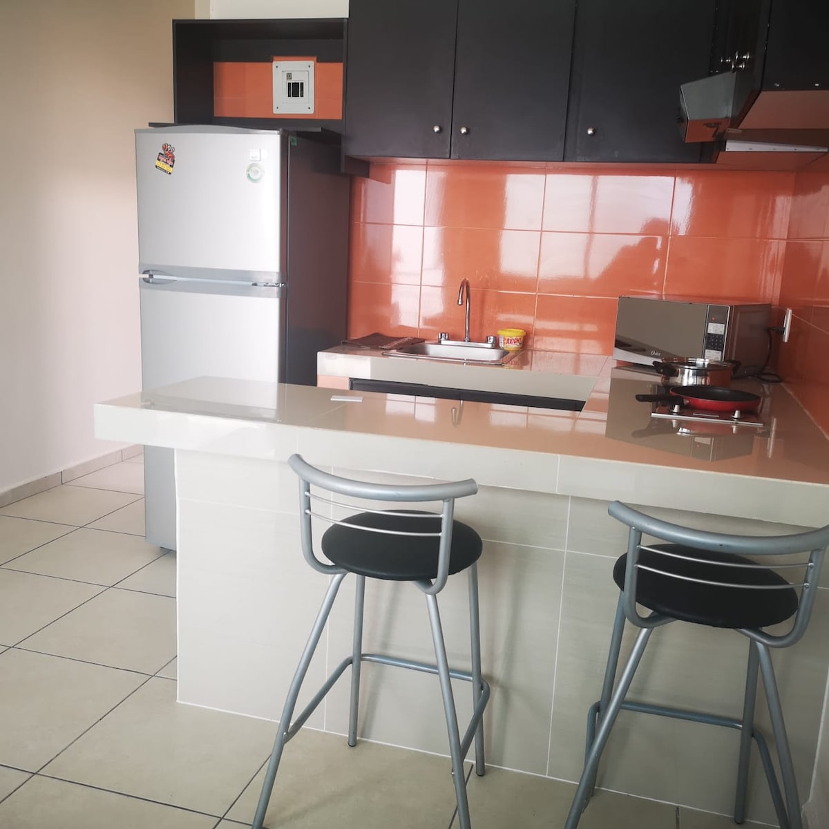 Vive la experiencia de alojarte en un departamento nuevo en la zona residencial más bonita de Colima, en un ambiente privado, de arquitectura destacada, espacios amplios, frescos y ventilados, con todas las comodidades. Este alojamiento ofrece una ubicación céntrica para visitar los mejores restaurantes de la ciudad. Calle poco transitada y a la vez súper próxima a las vialidades principales.