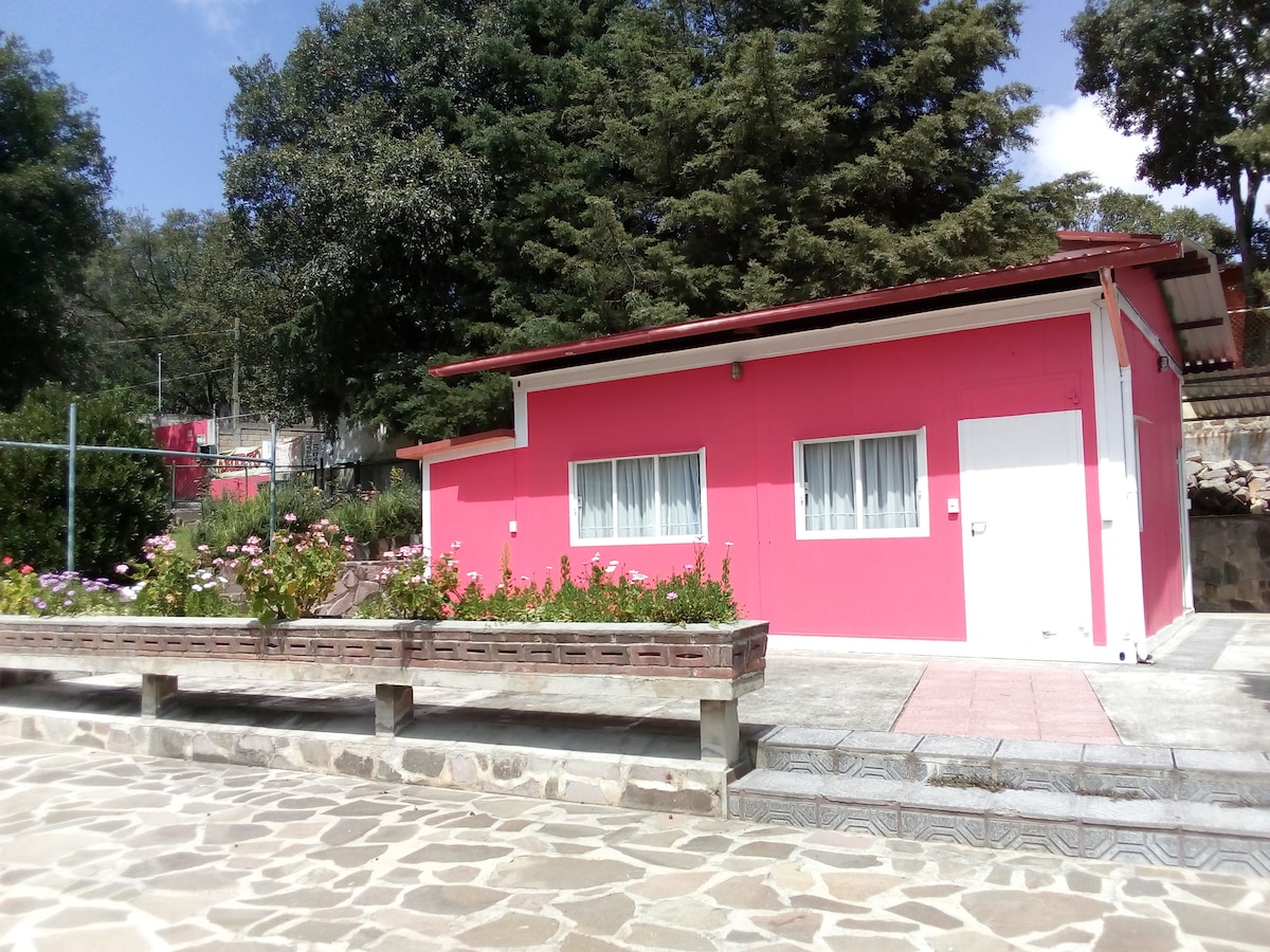 Casa de campo, rodeada de bosque y áreas verdes, con todos los servicios. Capacidad para 6 personas. El precio por noche es para dos personas; huéspedes adicionales (de 3 a 6 ), tienen un cargo adicional de $480 /persona / noche. Jue y vie santo, 24, 25 y 31 de dic y 1 de enero se incrementa 30% ($585) Servicio de wifi con cargo adicional * Ver detalles en: Información de la propiedad / limitaciones de servicios / Cosas que tus huéspedes deben saber Costo adicional: Internet y leña