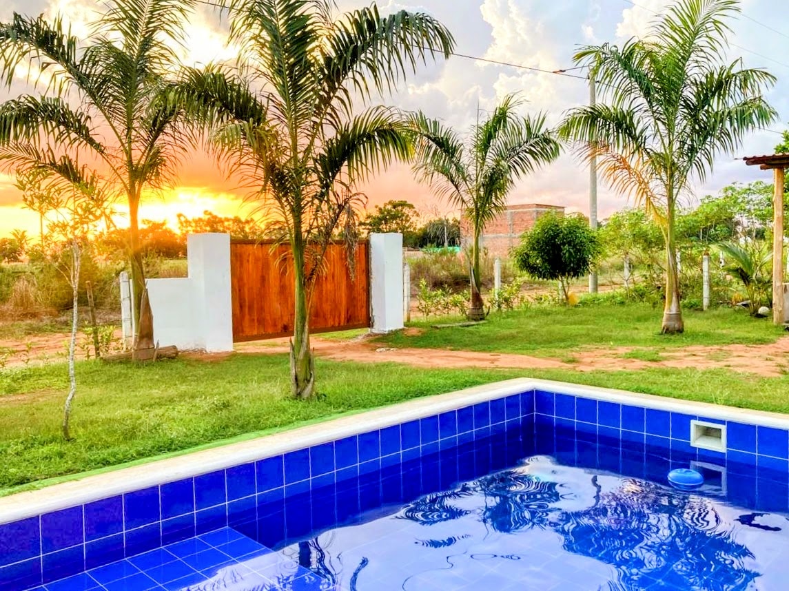 Desconecta de tus preocupaciones en este espacio tan amplio y sereno rodeado de frutales y disfrutando del atardecer llanero desde la piscina.