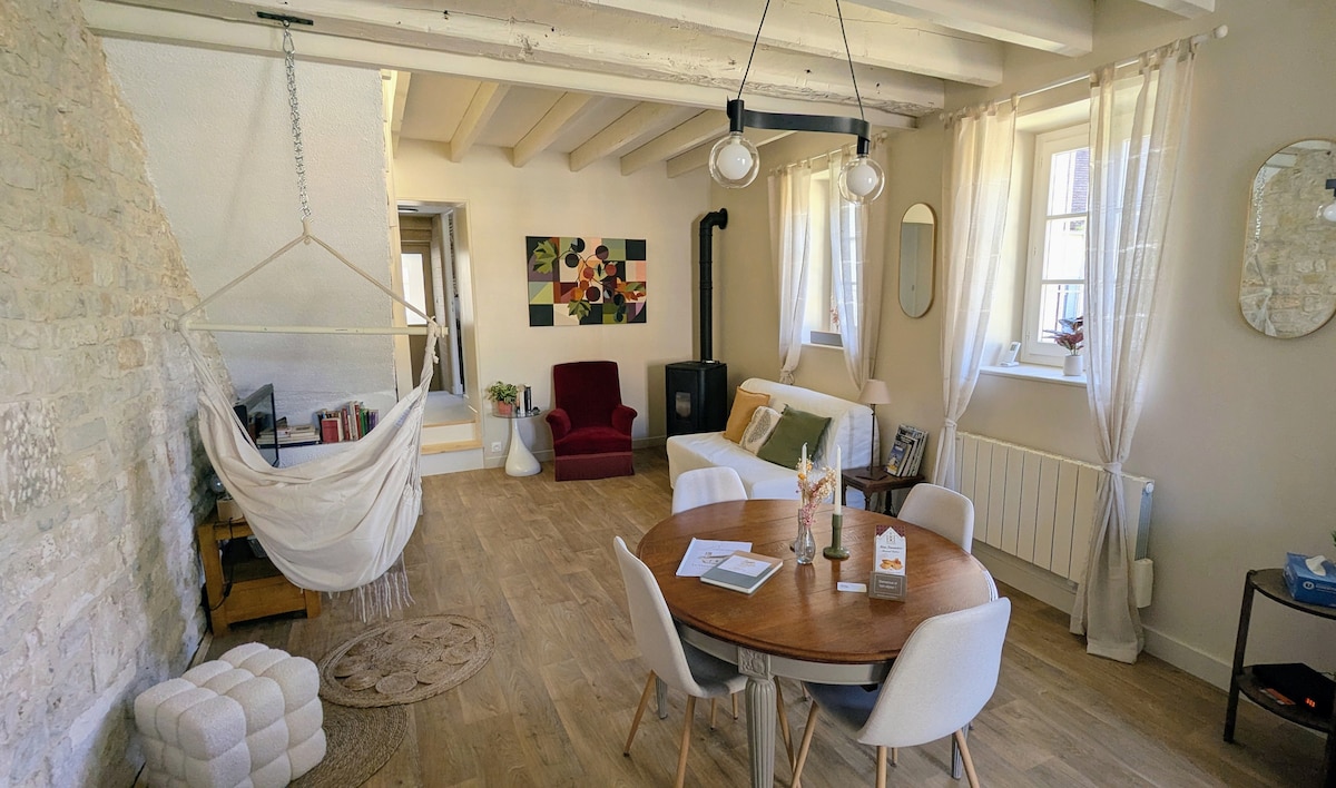 «El nido de los amantes» es el lugar ideal para parejas que buscan relajación y zen. Esta casa de 70 m² totalmente renovada ha sido acondicionada y decorada en tonos y materiales naturales por una adicta a la decoración. Este acogedor nido es el lugar ideal para reunirse en pareja y pasar un buen rato juntos. Lo +: jacuzzi, sala de masajes, proyector de vídeo con cine en casa Hermosas prestaciones, decoración cuidada y bonitos materiales como hormigón encerado, lino, algodón orgánico..