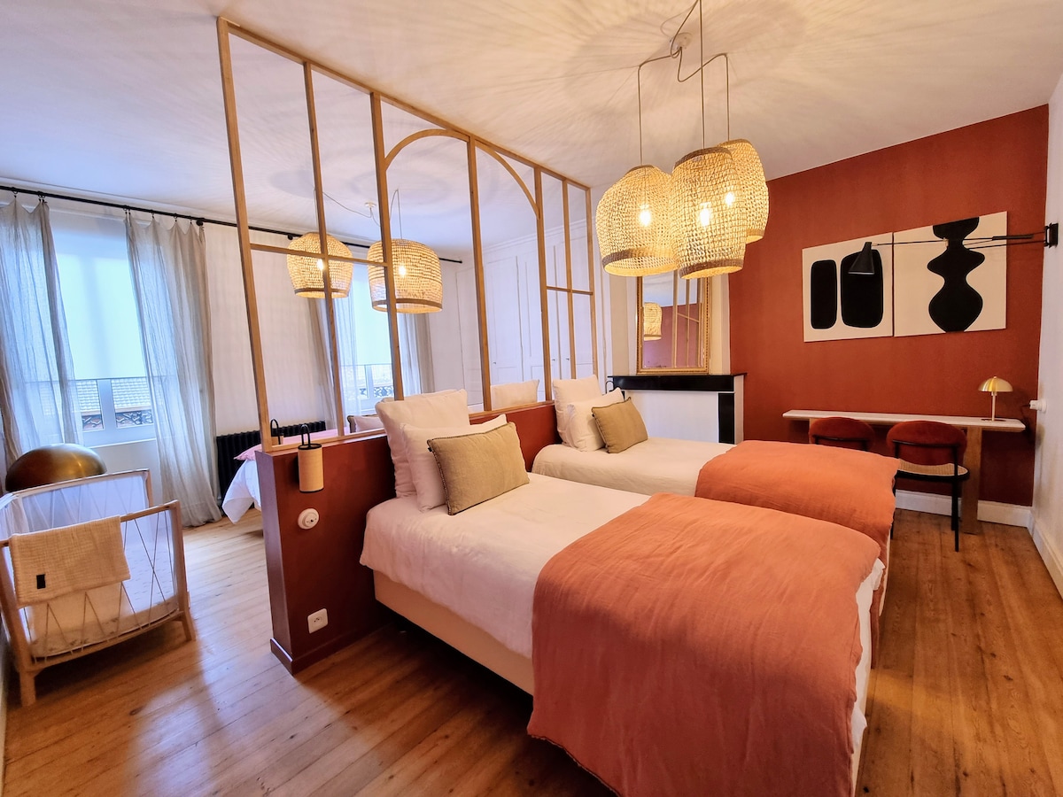 En el segundo piso de nuestra «Casa atípica» de principios de 1900, un espacioso apartamento con capacidad para 4 personas. Tendrá a su disposición 2 dormitorios, una zona de estar/cocina y un baño privado con ducha a ras de suelo. Somos Bénédicte y Francesco y compartimos la calidez de nuestra bienvenida para hacer que su estancia sea agradable. Podrá disfrutar de nuestro jardín para momentos de relajación, todo protegido de los ruidos de la ciudad.