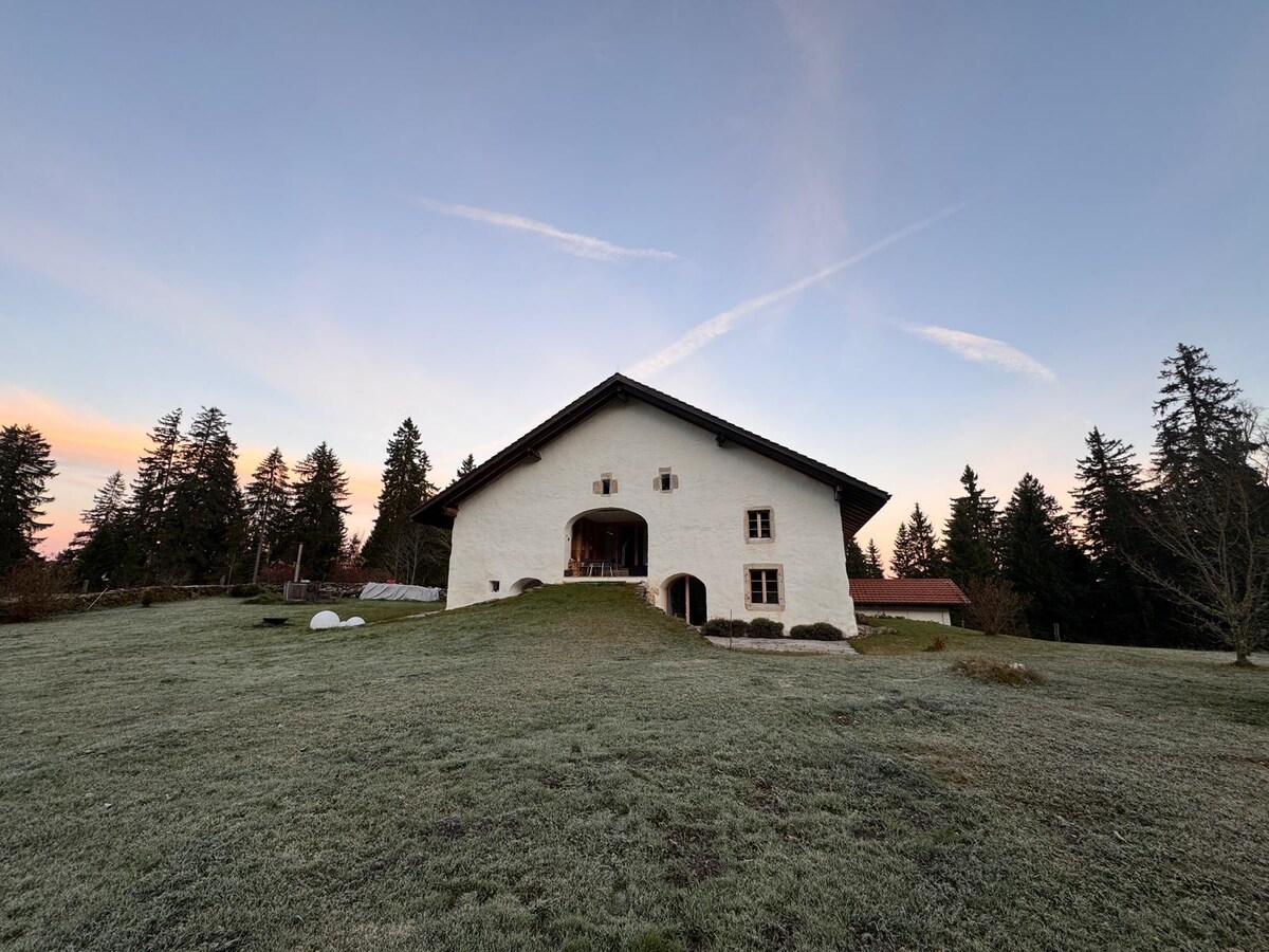 ¡Le damos la bienvenida a La Doline! Relájese en este alojamiento tranquilo y elegante, situado en el corazón de los pastos boscosos de las Franches-Montagnes, en la zona de producción de la famosa «Tête de Moine», pasará un momento AUTHETIQUE y PRIVILEGIADO en la aldea del Peu-Péquignot. Situado en el primer piso de la vivienda, se alojará en una granja en actividad de tipo lechero. El alojamiento ofrece todas las comodidades actuales necesarias para sentirse «como en casa».