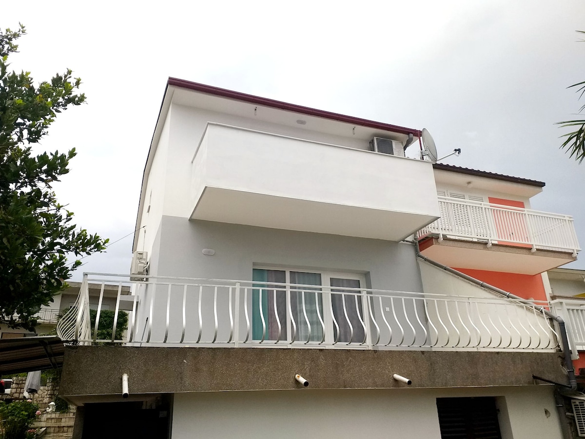 Apartamento nuevo y moderno con jaccuzzi y hermosas vistas al mar se encuentra en una ubicación tranquila, lejos de las multitudes de la ciudad. El departamento consta de una amplia sala de estar, cocina y comedor, un dormitorio y un baño. Es especialmente adecuado para familias con niños o amigos. El apartamento tiene aire acondicionado, tiene wifi y en la zona al aire libre se puede disfrutar en jaccuzzi en la terraza con vistas al mar y otra terraza cubierta con barbacoa. Aparcamiento privado disponible.