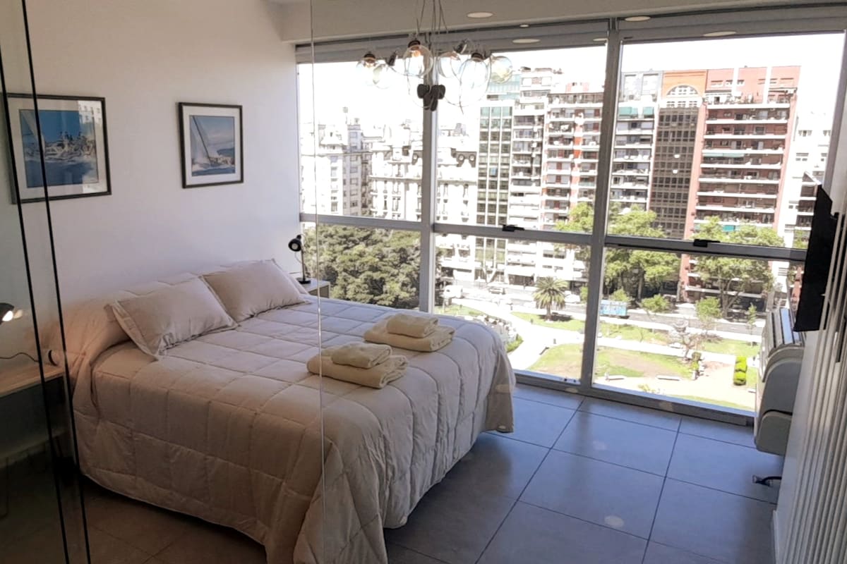 📍Cerca de todo: 200 metros zona de teatros, 700 metros del Obelisco 💻 Re equipado: Wifi, TV, enchufes USB, aire acondicionado frío/calor, sábanas, toallas, microondas, pava eléctrica y más. 🧻Todos los insumos: Shampoo, acondicionador, jabón liquido, papel higiénico. ☕️Algo para desayunar: café, té, yerba mate y agua. 😴 Departamento tranquilo, silencioso y luminoso en el centro de la ciudad. Modo Mate 🧉 🇦🇷