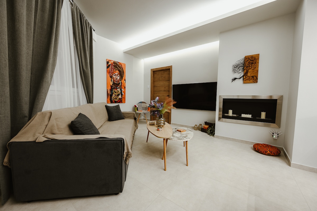Soak up the modern and stylish charm of this third-floor 50sq.m loft-styled apartment right in the heart of the city. Admire the view of the sea from the balcony while listening to music or enjoying a relaxing drink. The apartment has a bedroom for two adults and a living room with a sofa-bed that can sleep two more adults and offers plenty of modern conforts, from air conditioning to Smart TVs . It is ideal to provide luxury living to its guests. Take your time to relax and enjoy!