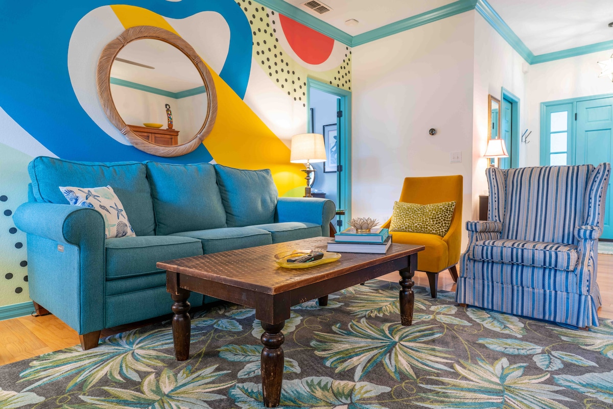 Disfrutá de este colorido alojamiento inspirado en Key West con un estilo audaz de Memphis de los años 90, ¡todo para vos! Este refugio de 3 dormitorios y 2 baños cuenta con 115 metros cuadrados de espacio vibrante, un gimnasio en casa y una zona privada para tomar sol al aire libre. El tercer dormitorio también funciona como una oficina exclusiva con un escritorio y una impresora. Ubicado a solo 10-15 minutos a pie o en coche del encantador centro de Mount Dora, tendrás fácil acceso a tiendas, restaurantes y vistas al lago mientras te relajas en una casa llena de estilo y personalidad.