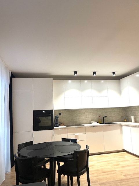 Apartamento de diseño cerca del aeropuerto con una gran terraza soleada. Ofrece tranquilidad, estilo y excelente acceso al centro de Bratislava. Incluye una plaza de aparcamiento subterráneo. Los alrededores tienen excelentes servicios públicos (AVION, IKEA, STARBUCKS, MC DONALDS...). Los apartamentos están totalmente equipados: lavadora, secadora, lavavajillas, cine en casa con todos los servicios de streaming y cocina totalmente equipada con cafetera. Por la noche, puede disfrutar de una copa de vino en la gran terraza con una vista maravillosa.