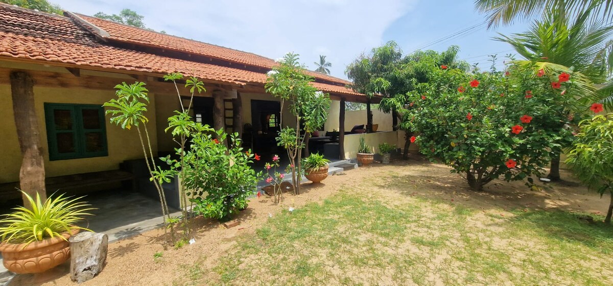 A space created for you to relax and be close to the ocean.Experience eastern Sri Lanka desert vibes at this self catering beach house. Just at the edge of town, you can enjoy being close to the ocean. 100m away from the ocean, you cannot see it but you can hear it. With a private gate access, you can walk out from the house to the beach to watch the sunrise over the horizon. Or you can walk along the beach to Arugam bay main surf point in about 10mins.This is one of two houses on the property.
