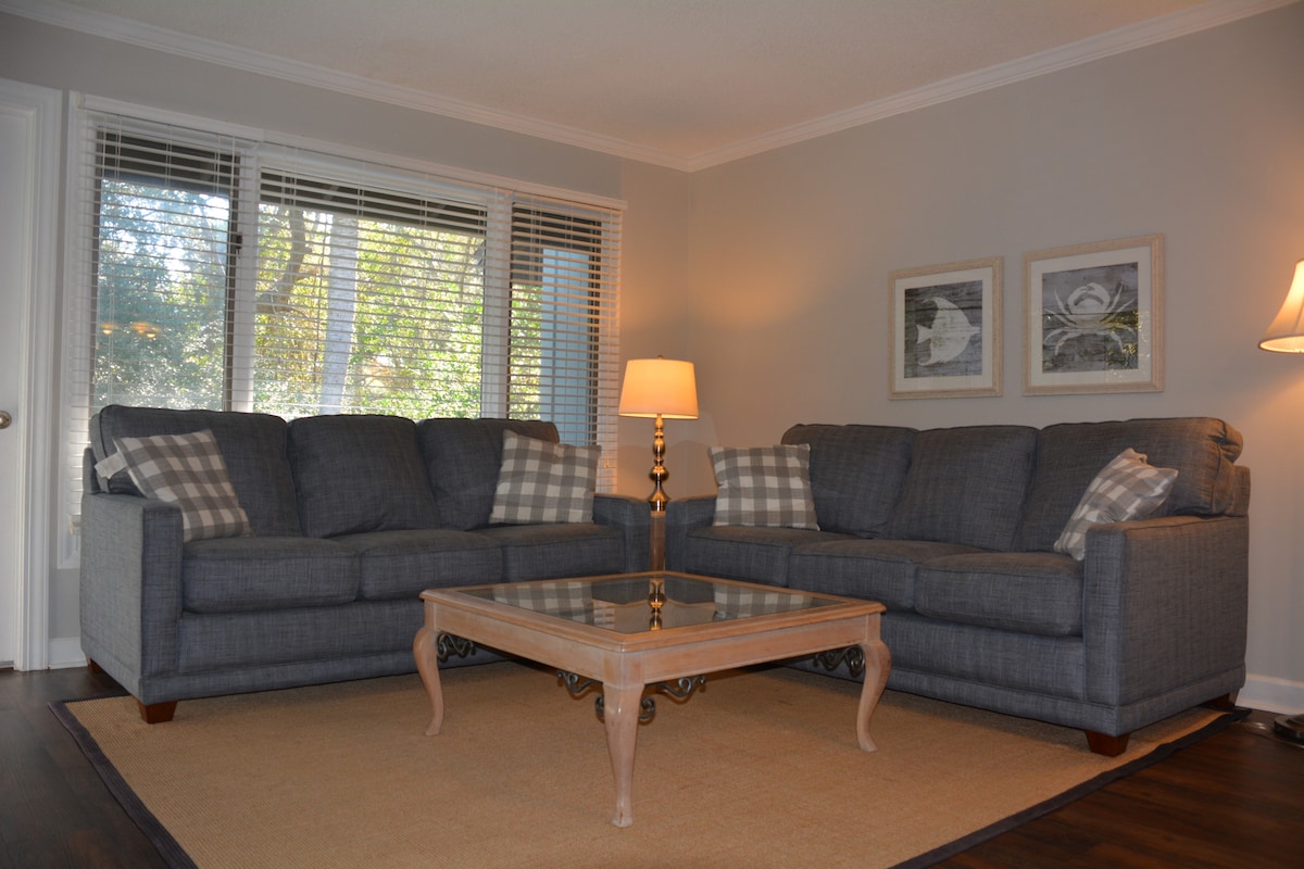 Villa Kiawah en el segundo piso, cerca de la playa (a menos de 3 minutos a pie) sin carreteras que cruzar, cerca de todo. Actualizado. Perfecto para parejas que buscan una escapada tranquila a la playa. Sofá cama para niños. Porche cerrado con vistas al bosque marítimo. Observa a los ciervos deambulando y escucha el canto de los pájaros. Excelente ubicación para correr al amanecer o pasear por la playa con una taza de café. Nuestro apartamento puede alojar cómodamente a 3 adultos, o 2 adultos y 2 niños de 12 años o menos.