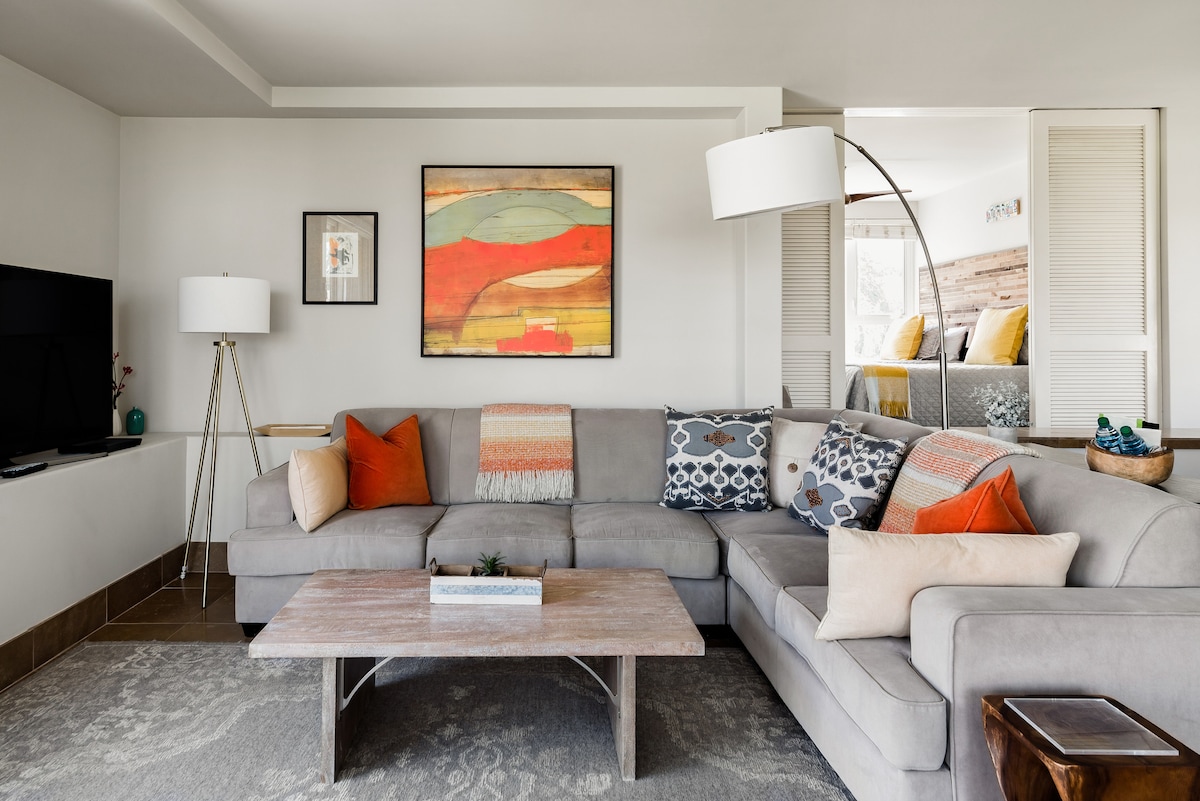 Disfruta de vistas panorámicas al mar, a la montaña, a la playa y al atardecer durante todo el año en Hale Meli (abreviatura de «Hale Mahina Meli» o «Casa de luna de miel» en hawaiano), un apartamento en el último piso con exquisitos interiores de diseño y servicios de alta gama. Con una ubicación ideal en Kihei, el apartamento está justo enfrente de una de las mejores playas de Maui y a poca distancia a pie de restaurantes, tiendas y tiendas de comestibles. También es tu base de operaciones perfecta para explorar el resto de Maui, ya que está situado en el centro de la isla.