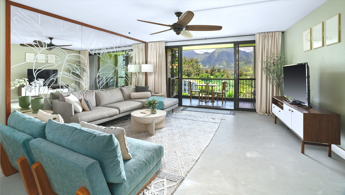 Nuevo anuncio en el Hanalei Bay Resort. Despiértate con vistas impresionantes de la bahía de Hanalei, cascadas y las increíbles montañas verdes y exuberantes de la isla jardín. Junto con el increíble paisaje, también tendrás acceso a piscinas, jacuzzis, canchas de tenis, acceso a la playa privada, instalaciones de sala de pesas y disfrutarás de música en vivo todas las noches en el Happy Talk Lounge. Todas estas actividades están a solo unos minutos a pie de la puerta principal o disfruta de un relajante paseo en carrito de golf.