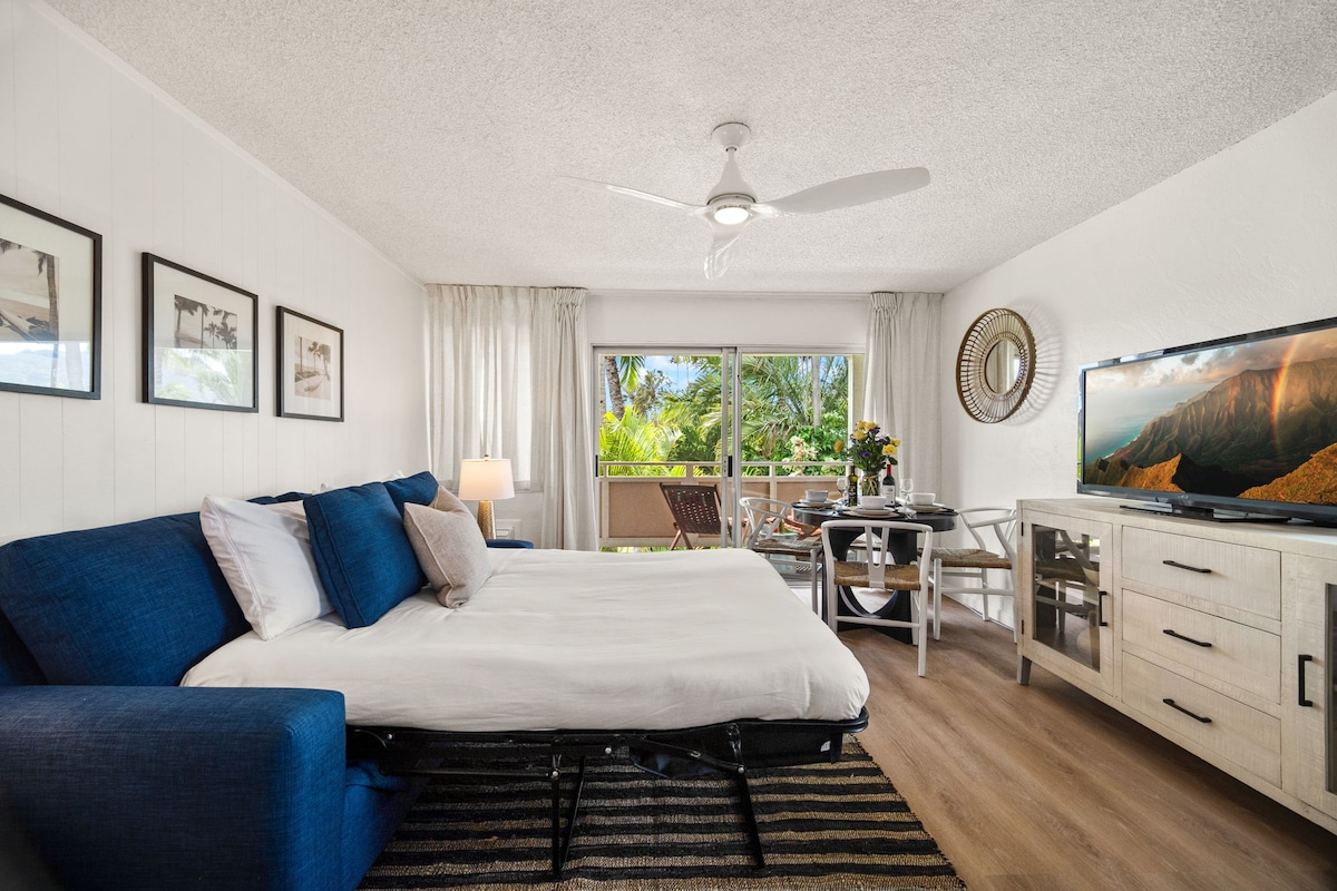 Shell Kauai Coast Resort de un dormitorio con vista al jardín