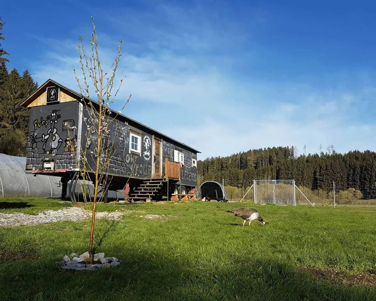 El alojamiento fue originalmente una sala de estar en un sitio de perforación de petróleo en Marchfeld, más tarde se utilizó como un vagón de mudanzas hasta que descubrimos su potencial como una microcasa sobre ruedas. De la antigua caravana de obra solo quedaba la estructura, todo lo demás lo hemos planeado, arreglado y equipado nosotros. Los huéspedes ahora encontrarán el remolque de construcción como un alojamiento que no carece de ningún (pequeño) lujo. En medio de la pradera de llamas, tiene un lugar idílico en la granja.