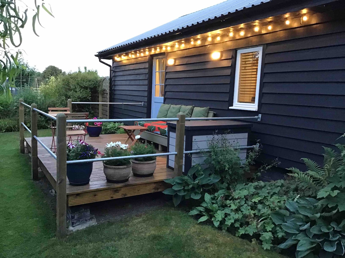 El lugar perfecto para desconectar. Un refugio rural en una pequeña finca a solo 10 minutos de la costa patrimonial de Suffolk. Una cabaña con tu propio baño de spa privado al aire libre: funciona como un jacuzzi, pero puedes usar agua dulce en cada baño y sin productos químicos. Incluye: - Bañera de hidromasaje - Plataforma privada - Cama tamaño king con colchón de espuma viscoelástica - Baño interior de lujo con inodoro, ducha de efecto lluvia y lavabo. - Cocina americana equipada. - Té y café locales. - Juegos de mesa. - Paseos aptos para perros. - Conoce a los animales. - Señal 4G